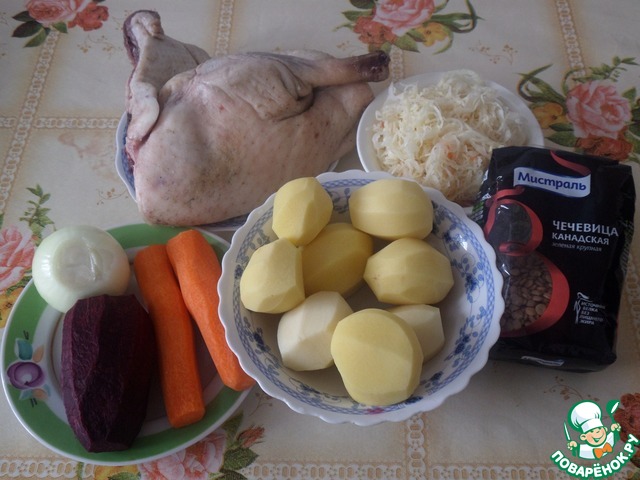 Ингредиенты для «Суп "А-ля борщ" с гусем и чечевицей»: