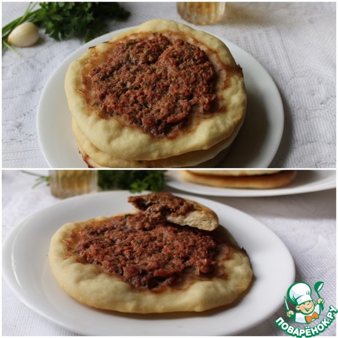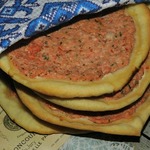 Блюдо армянской кухни - лахмаджо-это лепёшки с мясным фаршем. Лепёшки готовятся из дрожжевого теста. Готовое тесто раскатывается в небольшие, но тонкие лепёшки, смазываются сырым фаршем и запекаются в горячей духовке. Фарш я готовлю из мяса индейки, которое нежнее и полезнее, чем фарш баранины или смешанного фарша свинины с говядиной и хорошо усваивается организмом! Готовые лепёшки с аппетитом съедаются и состояние сытости поднимает настроение в разы! Попробуйте приготовить и наслаждение от этого блюда вам обеспечено! Хочу этот рецепт вкусного блюда подарить моей замечательной подружке Оленьке (Покусаева Ольга). Благодаря ей, её совету, иначе можно сказать, "пинку", я выставляю этот рецепт после длительного бездействия. Оленька, спасибо тебе за веру в меня и дружескую поддержку. Я тебе очень благодарна, дорогая! Надеюсь, Оленька, тебе понравится мой подарок и ты получишь удовольствие! Угощайтесь, друзья и вы! Всем приятного аппетита!