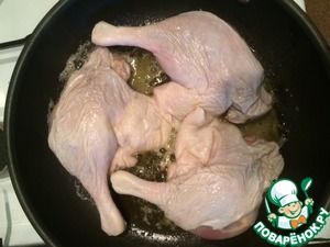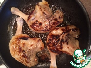 ... с двух сторон. Степень "припалистости" на фото. Т. е. просто прижечь корочку, не более того. Это необходимо, чтобы запечатать внутри ножки все соки и не высушить ее в процессе приготовления.