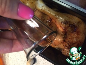 Смазать сверху ножки медом - для красивой корочки и пикантного привкуса. Вообще мой муж не любит сладости в мясных блюдах, но в "корочках" даже не ощущает, все только головой качает, как красиво получается, а я и не сознаюсь, что это просто мед красит))) Поставить в духовку на 40 минут на среднюю температуру.