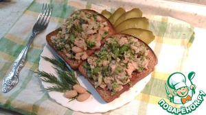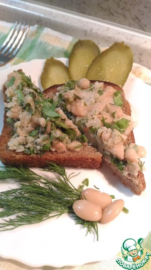 • Вилкой растираем фасоль вместе с зеленью. Можно блендером, получится более однородная консистенция. Добавляем пару ложек растительного масла. По вкусу соль, перец. Я не добавляла, чтобы не перебить приятное сочетание фасоли и пряной зелени.