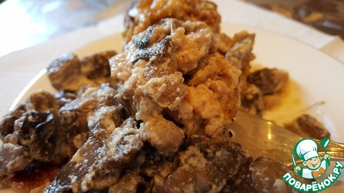 Накрыть крышкой и потушить минут 10. Добавить сливки. И тушить до готовности. Я тушила ещё 20 минут на слабом огне.