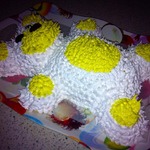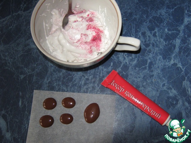Глазки и нос я сделала из шоколада, мордочку - подкрасила крем в розовый цвет, язычок - гелевый карандаш. Немного усилий и...