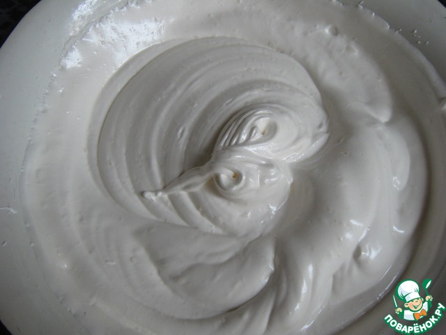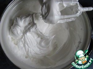 Взбить белки и понемногу добавлять сахар. Взбивать до плотной, устойчивой блестящей массы 10-12 минут.