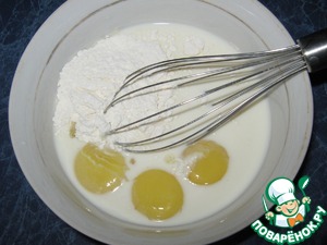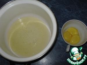 Яйца с сахаром тщательно взбиты.