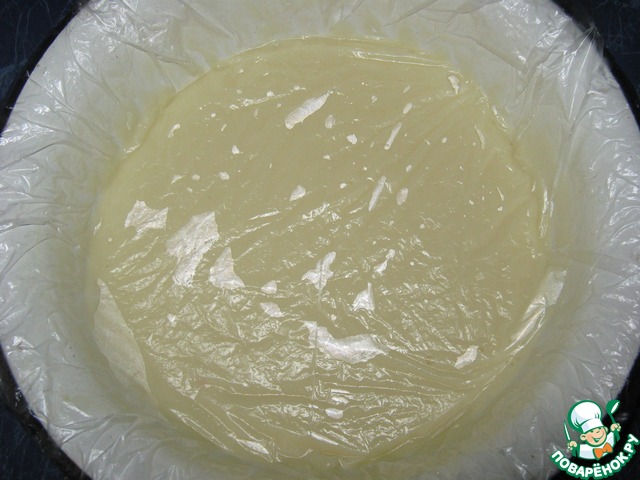 Тесто перелить в форму, дно застелено пергаментом, края ничем не смазывать, бисквит будет цепляться за бортики. Выпекать при 180 градусах 30 минут, ориентируясь по своей духовке.