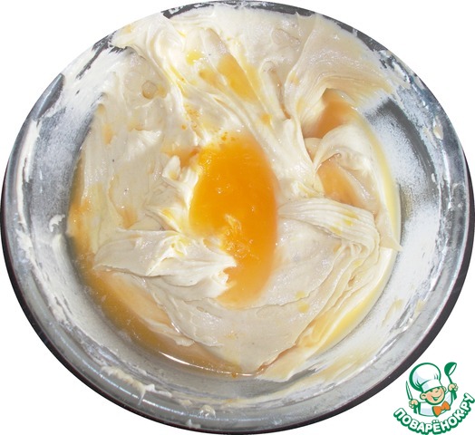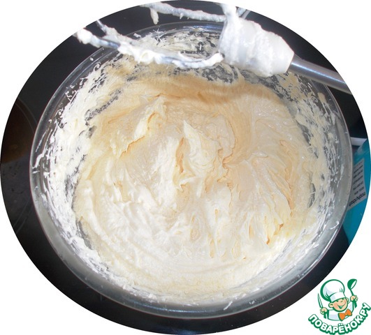 У вас должен получиться пышный, легкий крем. Из-за большого количества яиц, даже если они комнатной температуры, масло может начать чуть-чуть сворачиваться, это не беда. Главное, чтобы смесь совсем не разделилась на фазы, как это может произойти из-за холодных яиц.