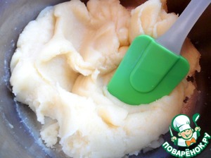 Снять с огня, остудить до теплого состояния и добавлять по одному яйца, каждый раз тщательно вымешивая миксером в однородную массу.