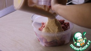 Добавить полученную смесь в фарш и всё тщательно смешать.