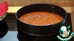 • 4-мя ложками жидкого варенья из киви смачиваем бисквит.