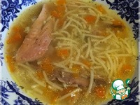 Заправить суп лучше всего самой мелкой вермишелью. Хотя и лапша тоже, например, не испортит. Но лапша лучше. И просто ее сварить. Только проследить, чтобы не разварилась. Именно сварить. |