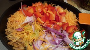 • Нарезаем овощи. Морковь можно натереть на тёрке для моркови по-корейски.