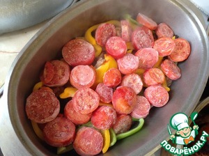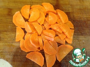 Морковь, так же нарезаем крупно, помидоры нарезаем кружочками