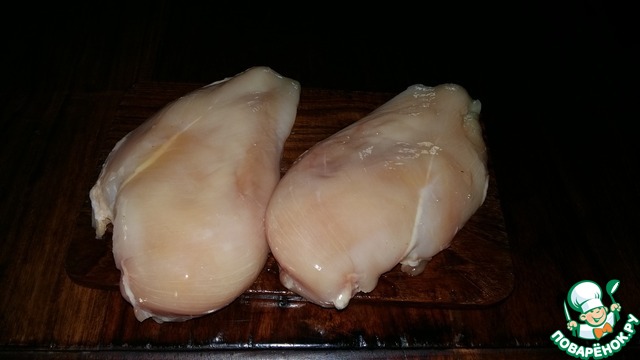 В верхней части каждой грудки удобным широким ножом прорезаем карман. Важно при этом не нарушить целостность грудки и не прорезать ее насквозь. Мясо подсаливаем изнутри и снаружи.