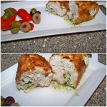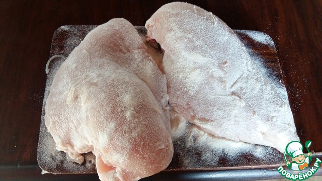 Начиняем грудки подготовленными смесями и припудриваем их мукой.