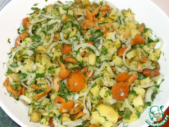 Ингредиенты для «Салат с грибами и маринованным луком»: