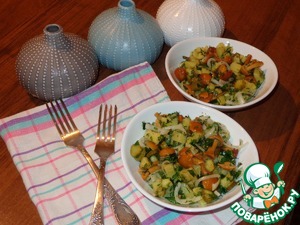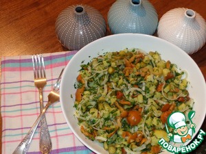 Очень простой в исполнении салат, но с приятными вкусовыми ощущениями, достаточно сытный. Актуален для постящихся, можно подать как основное блюдо на ужин, можно на праздник. Короче говоря, много у него положительных сторон, ещё и можно импровизировать. Найден мною в недрах интернета. Как говорится, пробуйте, и будет вам счастье.