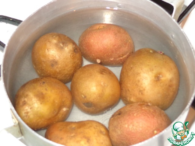Картофель отварить в подсоленной воде до готовности, слить воду, остудить и очистить.