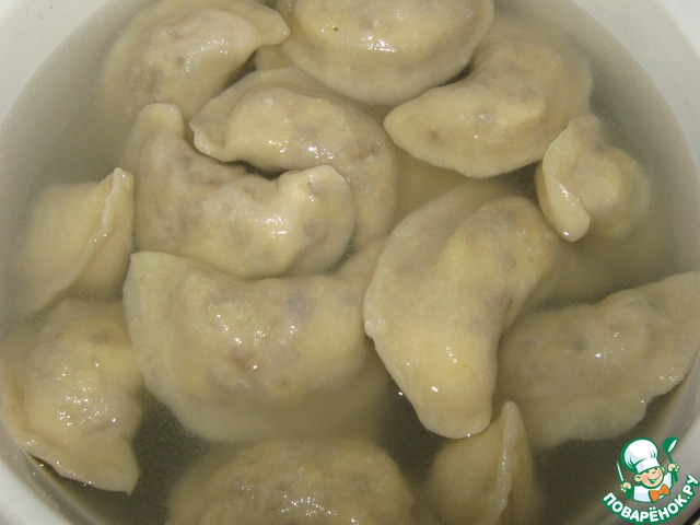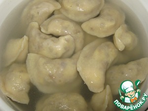 Начинку для удобства можно уплотнить. Вареники готовы, вода закипает...