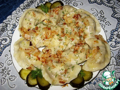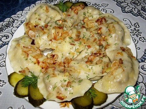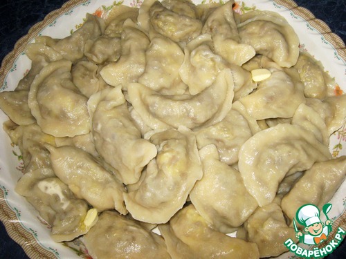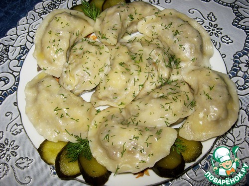 Рецепт «Вареники с картофелем, печенью и грибами»: