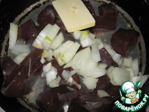 Печень нарезать, лук нашинковать. Обжарить на сливочном масле минут 10, печень останется нежной, главное ее не пересушить!