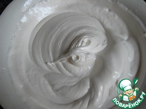 Взбить белки в пену и постепенно вводить сахар, смешанный с ванилином. Взбивать 10-12 минут до плотной блестящей массы.