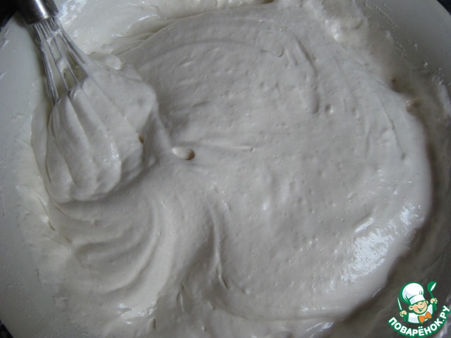 Взбивать непрерывно, масса увеличиться в объеме и станет пышной.