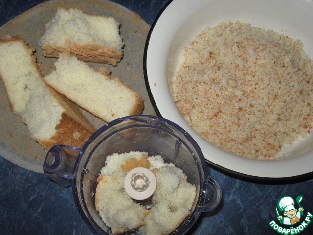 В блендере перемолоть бисквит в крошку.