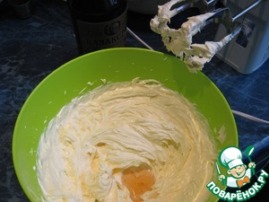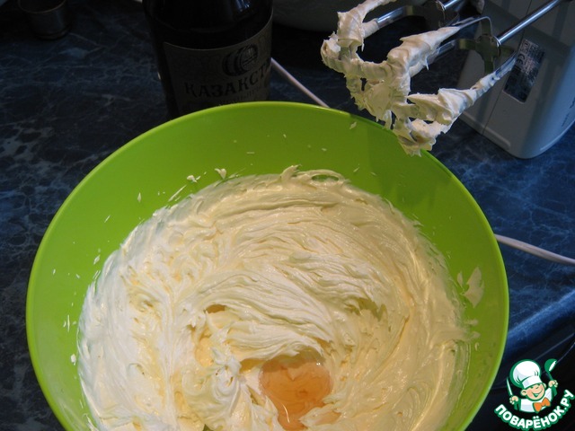 В готовый крем добавить коньяк, взбить.