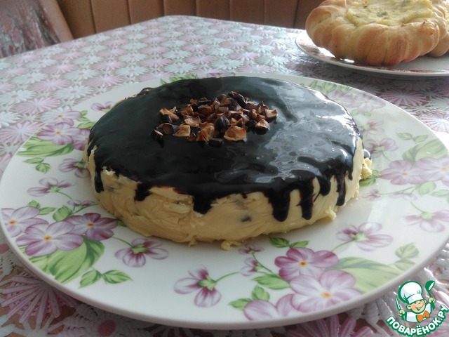 [+5]по вкусу даже не понятно, что из творога и не понятно что и как бы желе, интересный вкус получается. глазурь готовила сама, она вроде и густая но потекла. вполне полноценный торт. очень легкий и быстрый в приготовлении