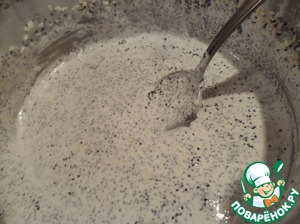 Готовим начинку. Белок с сахарной пудрой взбить добела, смешать с кунжутом и маком.