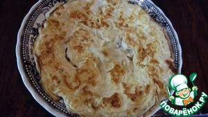 Скрутить всю конструкцию в рулет, закрепить его удобным для Вас способом /мне еще придется потренироваться с силиконовыми жгутиками/ и завернуть в фольгу. Запечь его в заранее разогретой до 210 градусов духовке в течении 20 минут. Духовку выключить, но не открывать до полного остывания. Лучше приготовить вечером и забыть о рулете до утра.