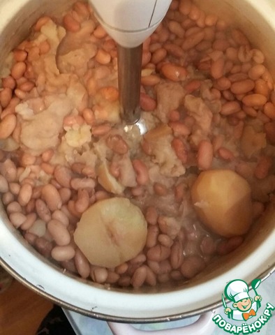 Отвар слить в отдельную посуду и измельчить картфель с фасолью блендером или любым другим удобным для Вас способом. Разбавить отваром до нужной густоты.