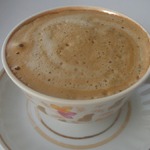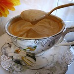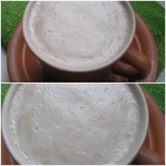 В чашечку кладете 3-4 ложечки крема и заливаете горячим молоком, хорошо перемешиваете, пенка занимает треть или четвертую часть кружки, она не опадает.