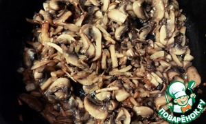 На подсолнечном масле обжарить лук с грибами до румяности.
