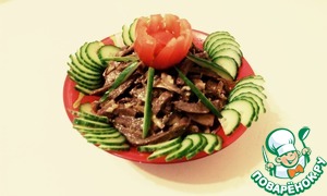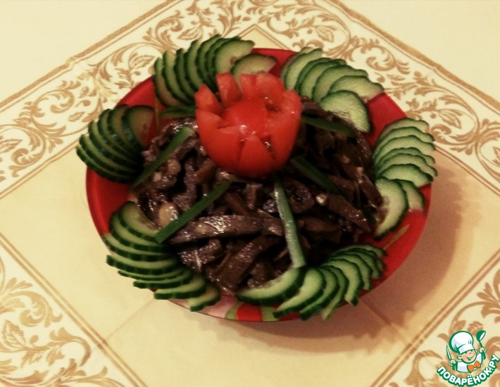 Этот салат очень нравиться мужчинам за его мясной и пикантный вкус. Он очень сытный. Несмотря на его непривлекательный вид, он первым улетает со. Кушать его нужно обязательно теплым. У того, кто хоть раз его пробовал, слова слетают с языка теплые)))