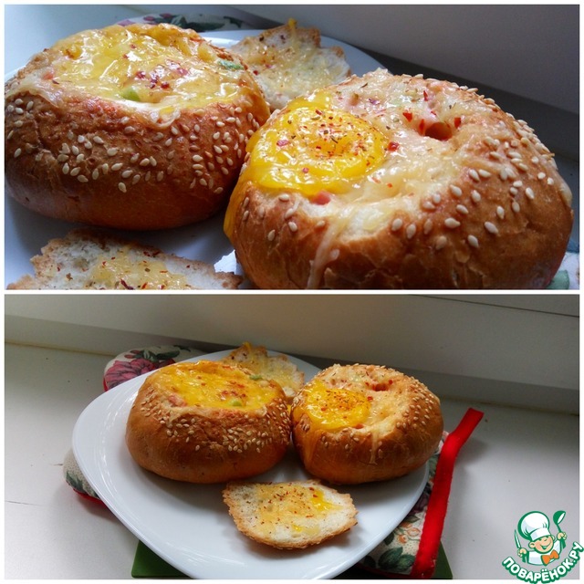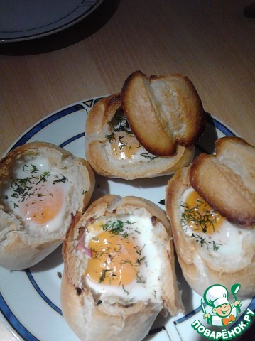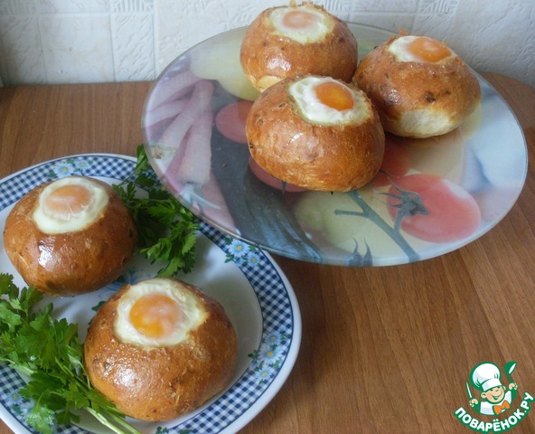 Единственное - берите булочки побольше или делайте лунки поглубже, чтобы яичко не вытекало!