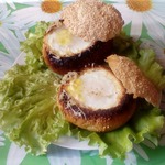 Запечь булочки до загустения белка. Крышечки тоже запечь.