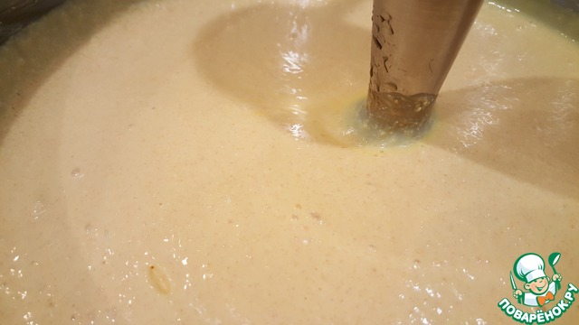 Добавить крахмал и пробить. Разогреть духовку 180*.