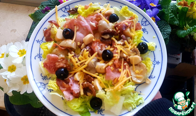 Ингредиенты для «Горячий салат с грибами и беконом»: