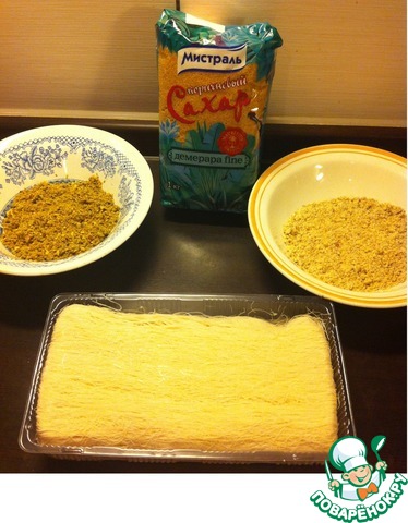 Она через несколько часов, когда сироп впитался, посыпала рулетики остатками ореховой крошки и мелким коричневым сахаром Мистраль.