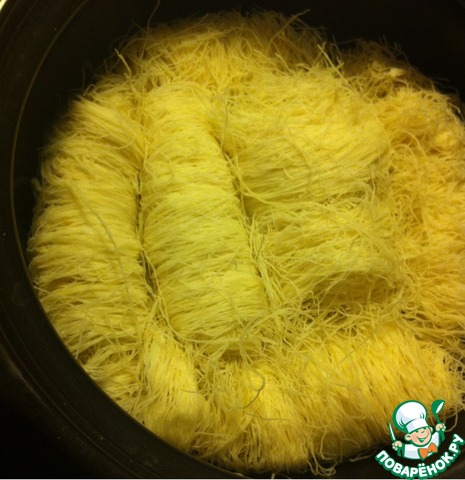Много лет назад ОН и ОНА летали в медовый месяц в теплую страну. Принимая во внимание современный ритм жизни, месяц сократился до недели, но зато какой: Он и ОНА купались в Красном море, пили мартини под пальмой и даже посетили Великие пирамиды. С отелем тоже повезло: повара каждый день старались приготовить что-то новенькое. То пельмени налепят, то борщ сварят, то десерты фантастические преподнесут. В один из романтических вечеров ОН и ОНА попробовали прекрасную восточную сладость, состоящую из сладких тончайших нитей, начиненных орешками. Восторгу их не было предела, но восточная сладость в меню больше не появилась. Медовая неделя быстро пролетела, быстро пролетели и годы… И вот, пополняя домашние запасы продуктов в супермаркете, ОНА увидела ТО САМОЕ ТЕСТО, сотканное из тончайших нитей. Она еще не знала, что их второе название «волосы ангела». На упаковке значилось «Катаифи». И так, наша история начинается.