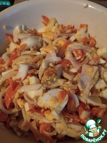 Рецепт «Салат c кальмарами и маринованным луком»: