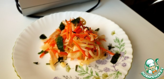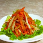 Давно хотела приготовить такой салат, но сомневалась. Сегодня решилась, и вкус мне на столько понравился, что теперь это один из моих любимых салатиков! Попробуйте, я уверенна, что и Вам понравится!