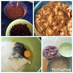 Замешиваем тесто и вмешиваем в него аккуратно вишню (свежую, предварительно удалив косточки или замороженную, кто чем богат) -
