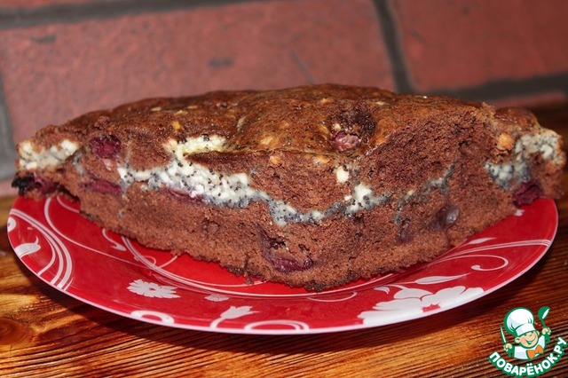 Рецепт «Шоколадно-вишневый пирог с творожно-маковой начинкой»: