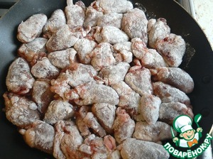 Куриные сердечки обвалять в муке и выложить на горячую сковороду с закипающим подсолнечным маслом