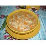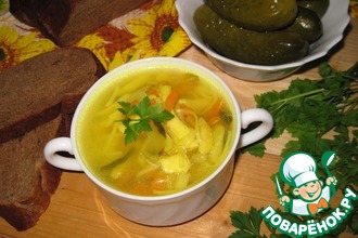 В это время почистить картофель, порезать кубиками, заложить в суп и варить еще 10 минут.