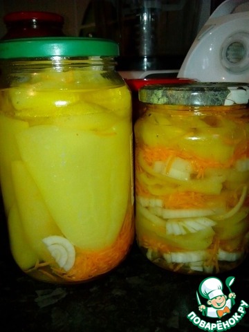 Пробовала такой перчик у свекрови – просто обалдела, таАак вкусно!!! А больше всего мне понравилось, что возни – минимум, а перчик – суперский!!!! Муж даже рассол выпил, так было ему вкусно. Ставить его лучше в 3 -х литровые банки, т. к. все что меньше – тут же съедается после открывания))))))) Спасибо, дорогая свекровушка, за чудесный рецептик!