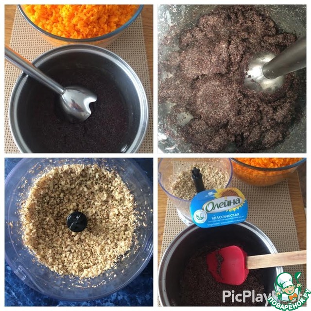 Для начала прокипятим мак минут 20. В это время почистим тыкву, измельчим при помощи блендера или натрем на терке (по желанию).